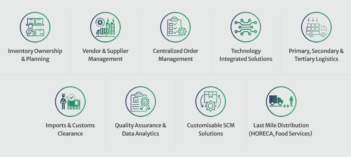 We are experts in 360° just-in-time food supply chain solutions. We develop, manufacture, aggregate and distribute temperature-controlled, ambient food and non-food products for leading brands in the Food Service, HoReCa and Retail Industries across India.